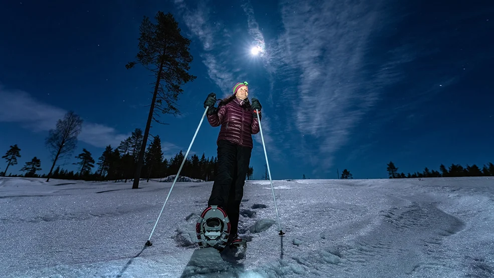 By moonlight, an experienced guide will show you one of four selected trails this winter.